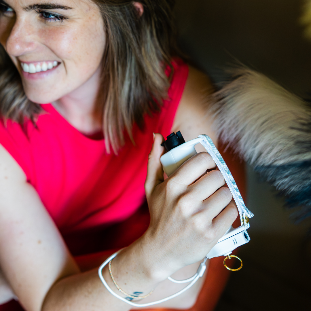 Every Sidekick includes your choice of pepper spray or dog spray, a flashlight, alarm, one grip, micro-USB charger, and both the keychain and safety spike attachments. Add-ons are optional and can be customized to fit your needs.
