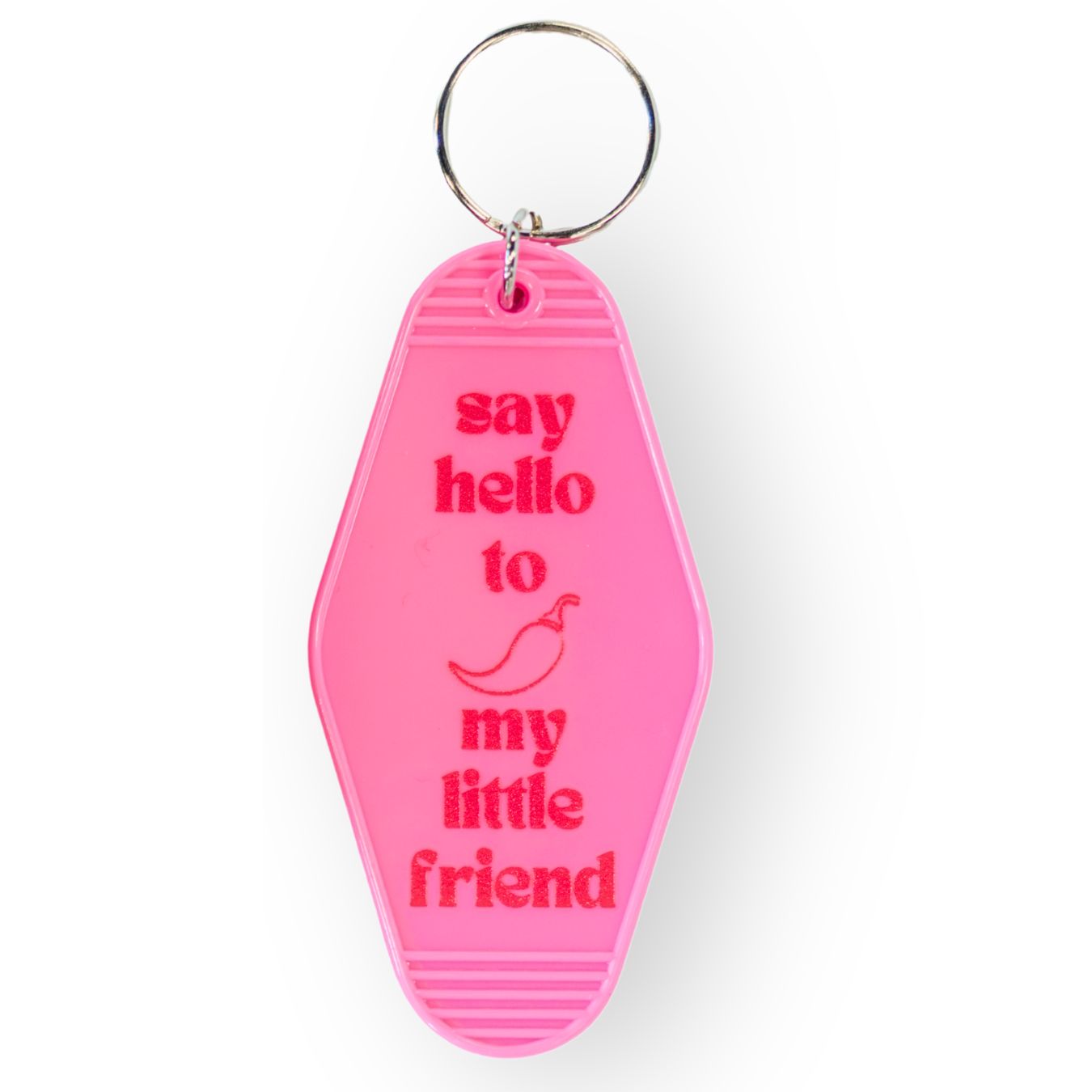 this custom motel keychain is the perfect accessory to attach to your keys, luggage, and safely pepper spray.