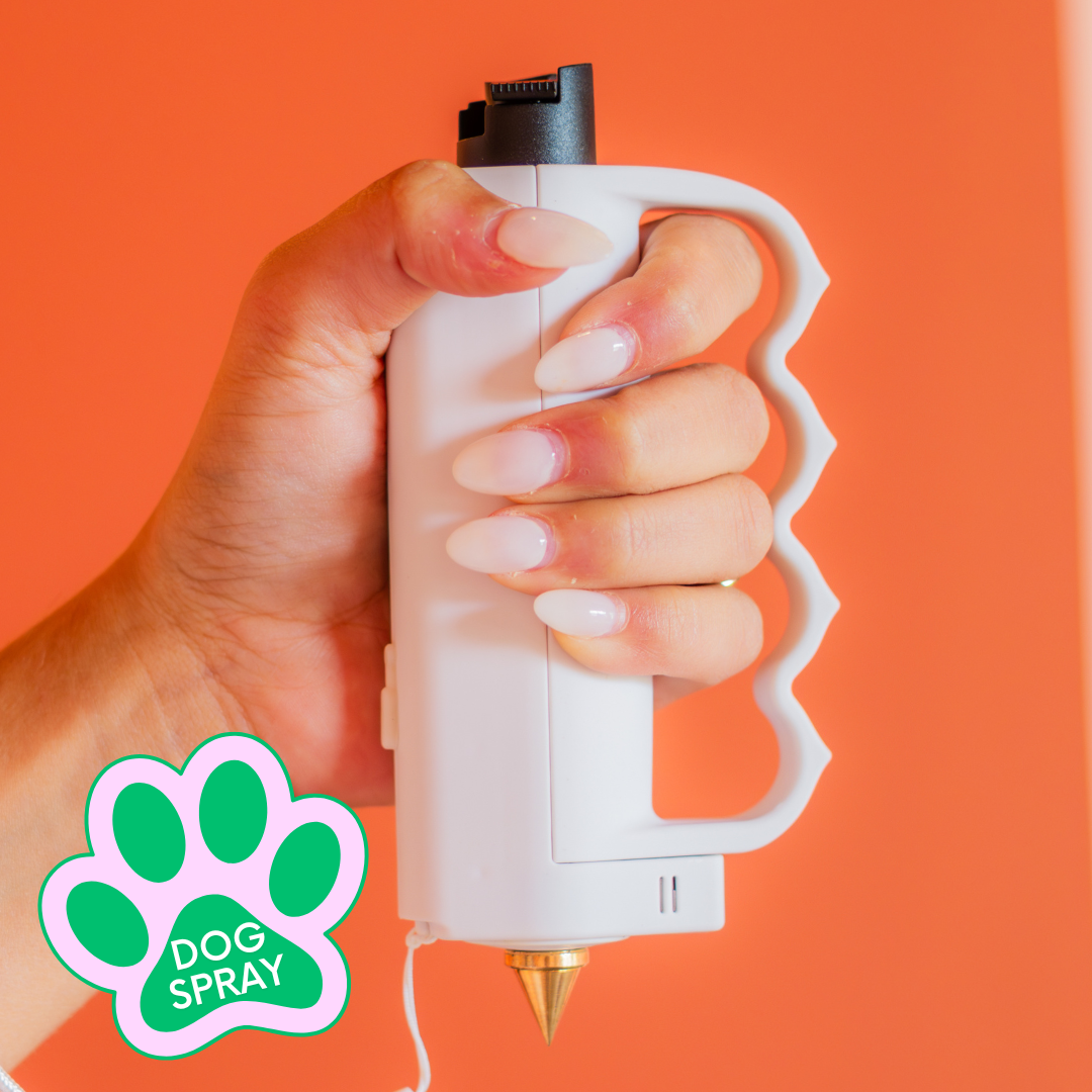 Every Sidekick includes your choice of pepper spray or dog spray, a flashlight, alarm, one grip, micro-USB charger, and both the keychain and safety spike attachments. Add-ons are optional and can be customized to fit your needs.